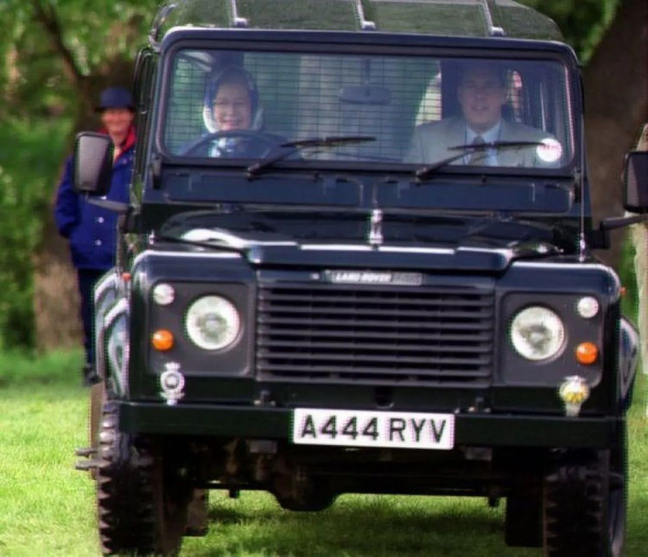 The closest thing I could find for a USA equivalent of the Queen in a Defender was Reagan in this old Jeep