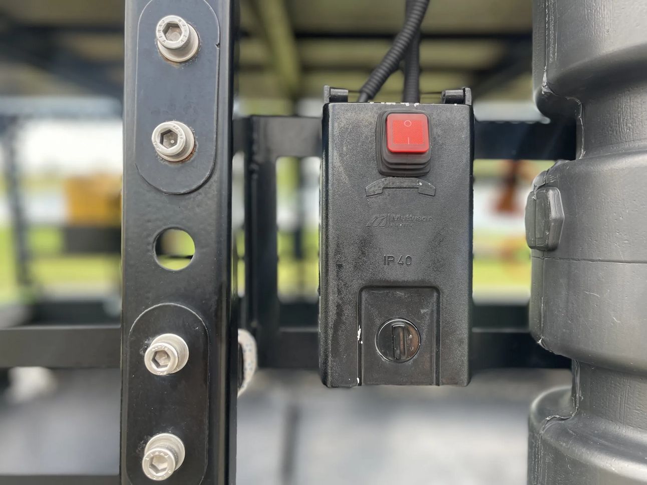 From this picture, it seems like the black container to the right of it is a water tank, so maybe the button is a water pump for the shower?