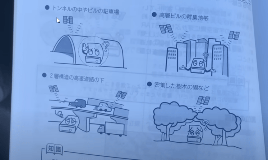 This cute little cartoon character in your GT-R handbook helping you figure out when you can expect your satellite GPS to work 🙂