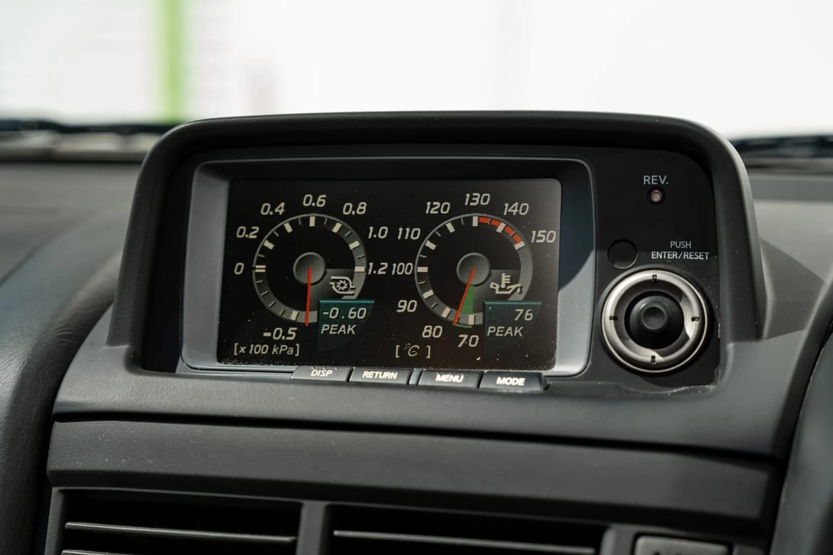For example, the monitor in the front of the car was HIGHLY programmable, and could monitor things like boost pressure, oil temps, g-forces, water temps, and lap times all in REAL TIME. IN TWO THOUSAND AND TWO.